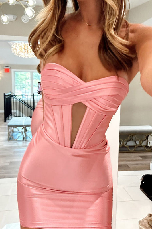 Cute Bodycon Sweetheart Pink Satin Short Homecoming Dresses LD080602