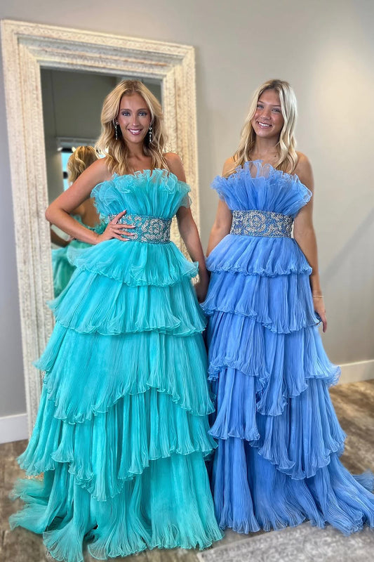 Gorgeous Ball Gown Strapless Organza Tiered Prom Dress with Beading