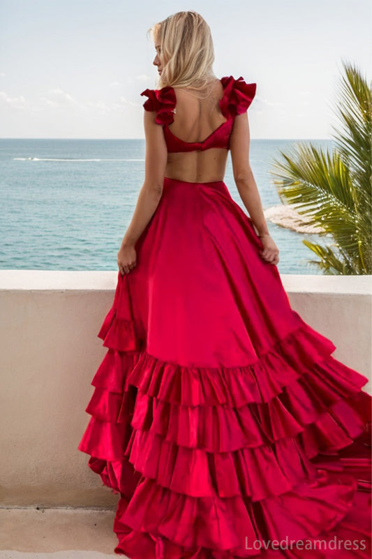 Elegant A-Line Strapless Satin Prom Dress with Chic Tiered lD102406