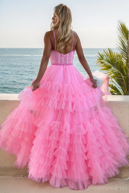 Elegant A-Line Lllusion Tulle Prom Dress with Tiered lD102414