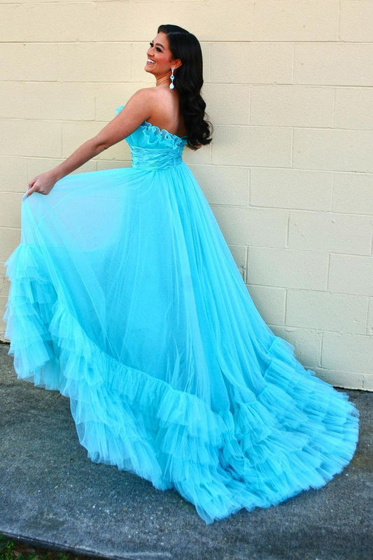 Cute Ball Gown Strapless Ruffle Tiered Tulle Prom Dresses LD062594