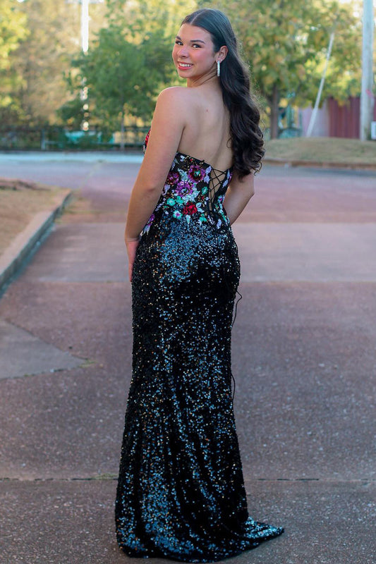 Vivienne | Cute Sweetheart Black Sequins Mermaid Long Prom Dress