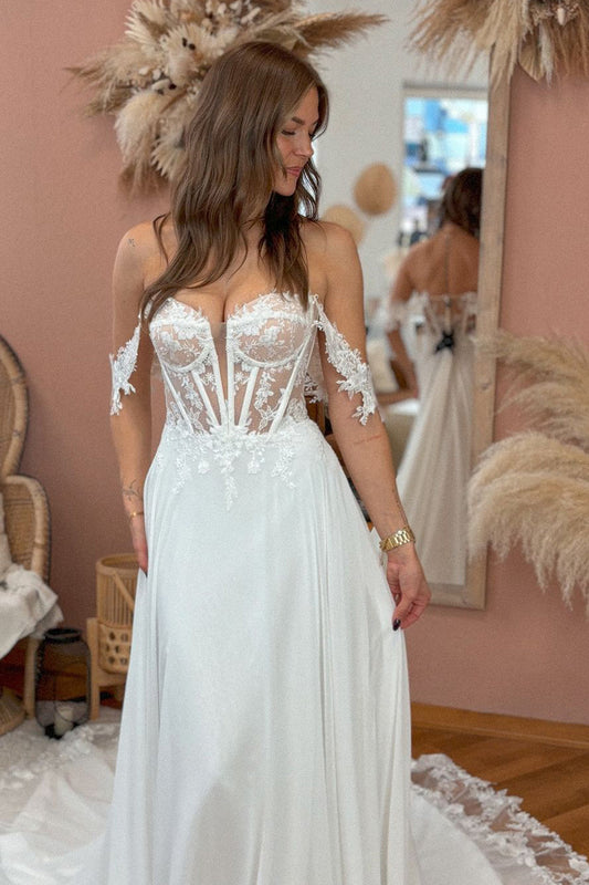 Seraphina | Off-the-Shoulder A-Line Chiffon Bridal Dress with Appliques