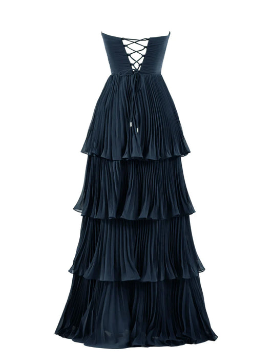 Stunning Strapless Emerald Green Prom Dress with Ruffled Multi-Layer Design ld101016