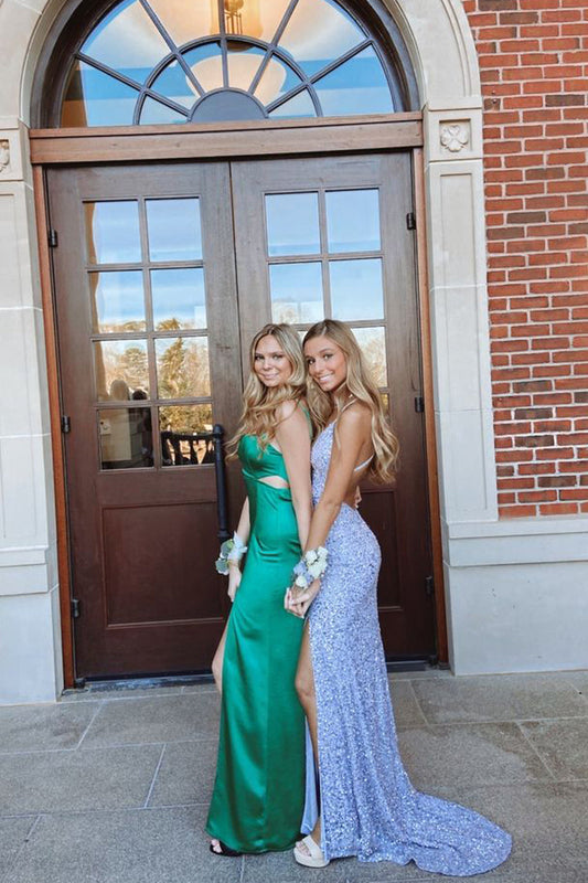 Charming Mermaid Cowl Neck Sequins Long Prom Dresses with Slit LD070302