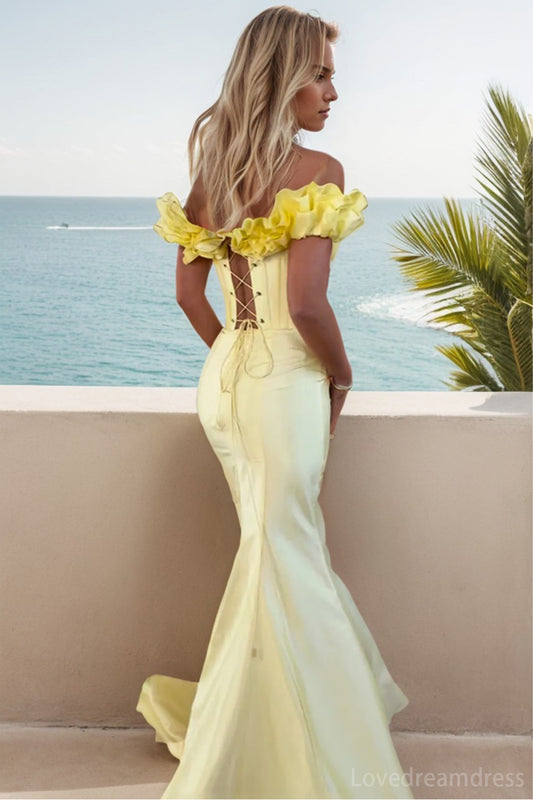 Elegant Mermaid Scalloped Satin Prom Dress with Chic Tiered lD102407