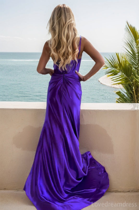 Elegant Mermaid V-Neck Satin Prom Dress with Chic Side Slit lD102308
