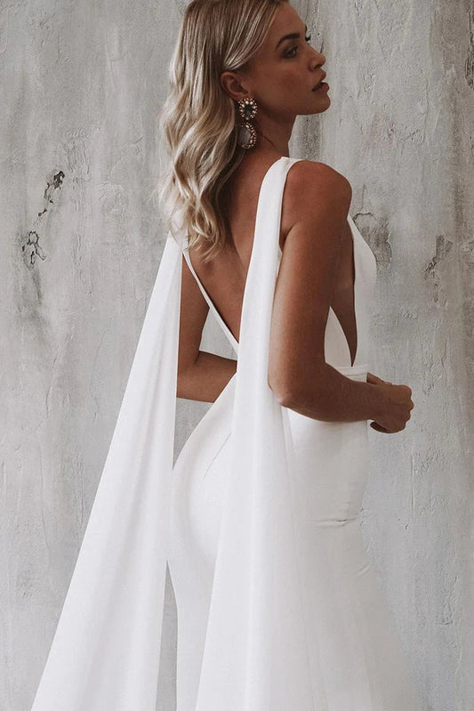 Elegant Satin Mermaid Wedding Dress with Deep V-Neck
