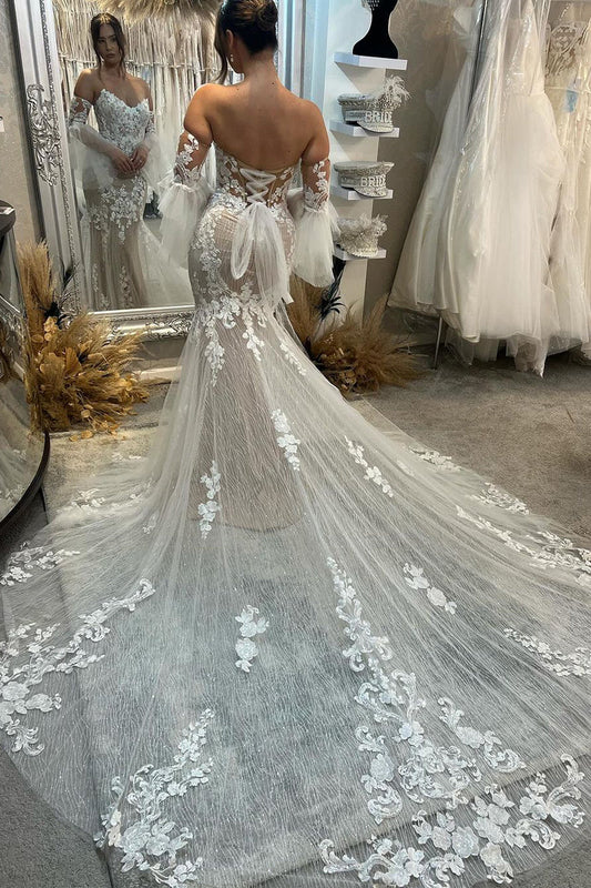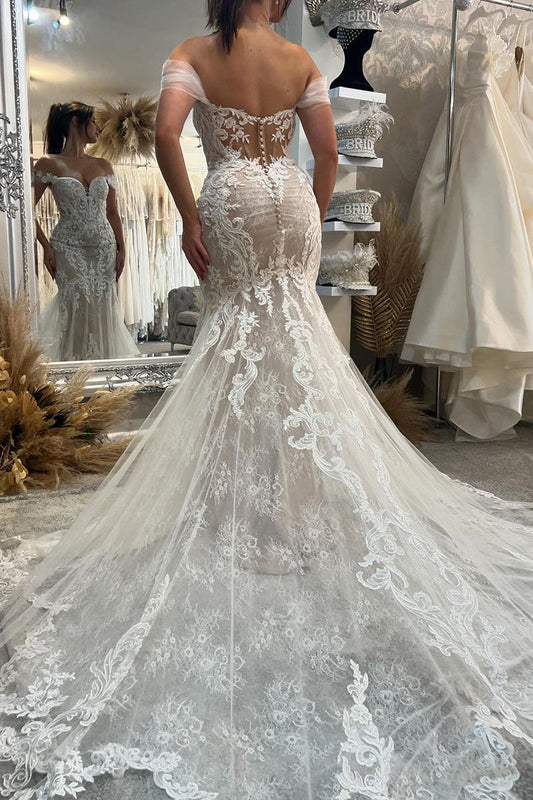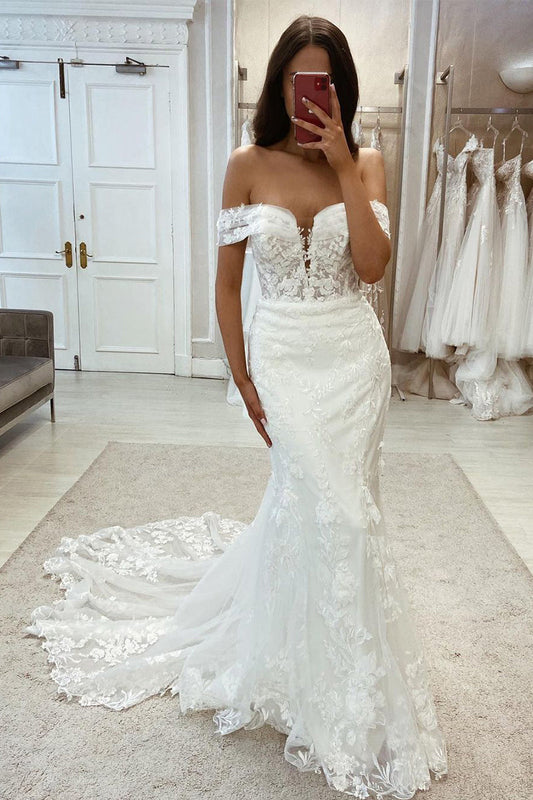 Charming Mermaid Off the Shoulder Lace Wedding Dresses with Appliques LD062548