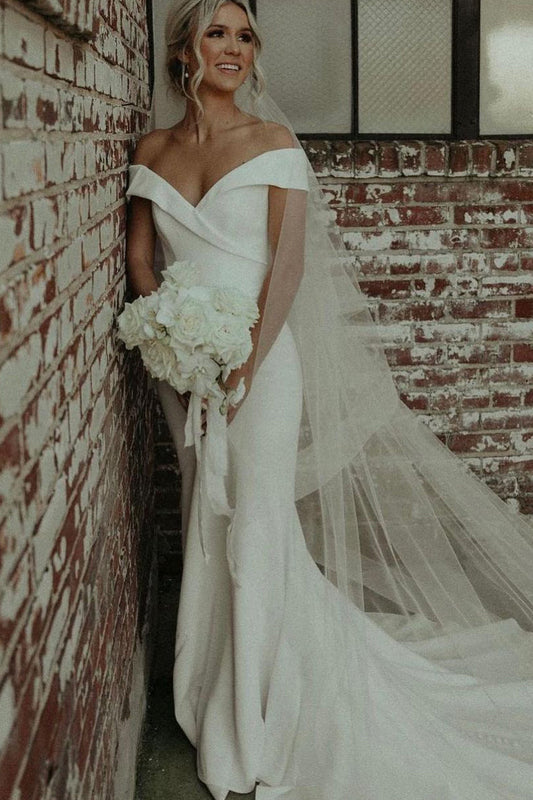 Elegant Mermaid Off the Shoulder Elastic Satin Wedding Dresses LD062517