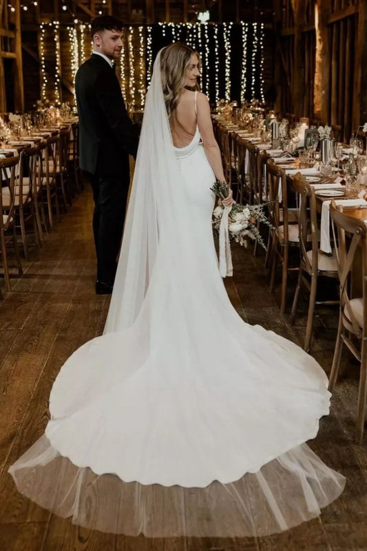 Elegant Mermaid V Neck Satin Long Wedding Dress LD062599