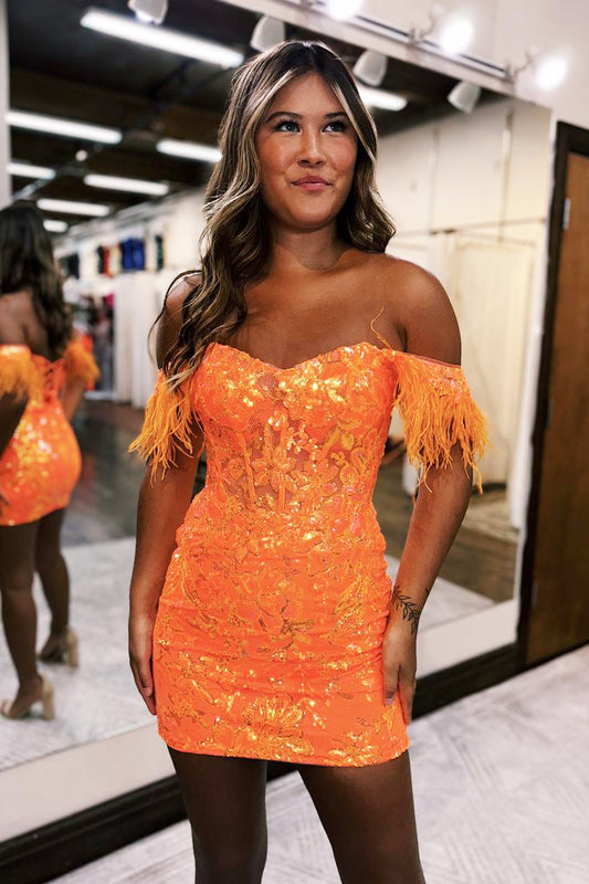 Cute Bodycon V Neck Orange Sequins Homecoming Dresses LD071604