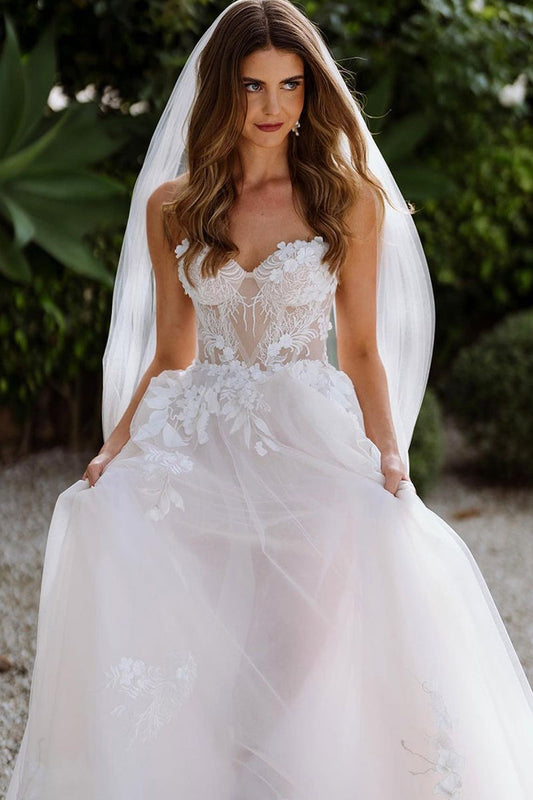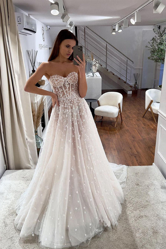 Fairy A Line Sweetheart Tulle Wedding Dresses with Appliques LD062524