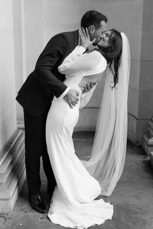 Elegant Sheath V-Neck Satin Wedding Dress with Long Sleeves