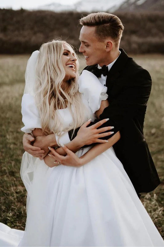 Fairy Ball Gown Square Neck Ruffled Sleeves Satin Wedding Dress LD070504