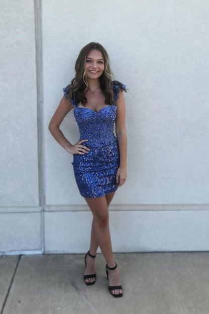 Cute Bodycon Blue Sequins Sweetheart Homecoming Dresses LD0625131